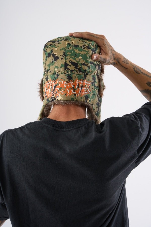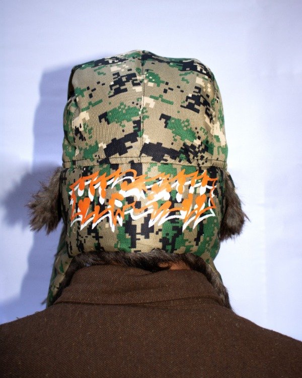 Gorro aviador intervenido en serigrafia por el artista Tomas Spicolli.