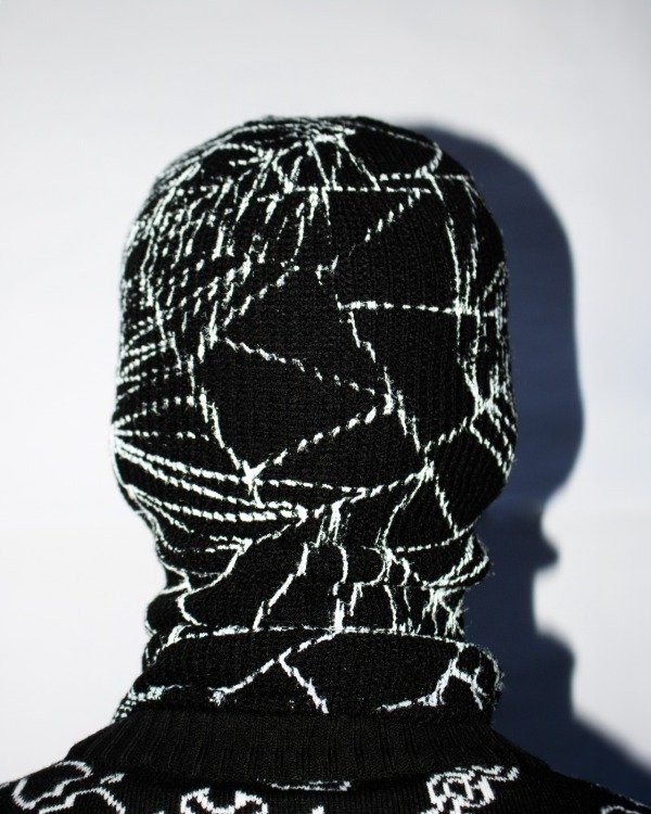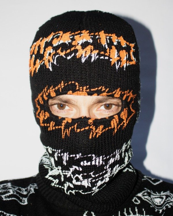 Gorro pasamontañas intervenido en serigrafia por el artista Tomas Spicolli.