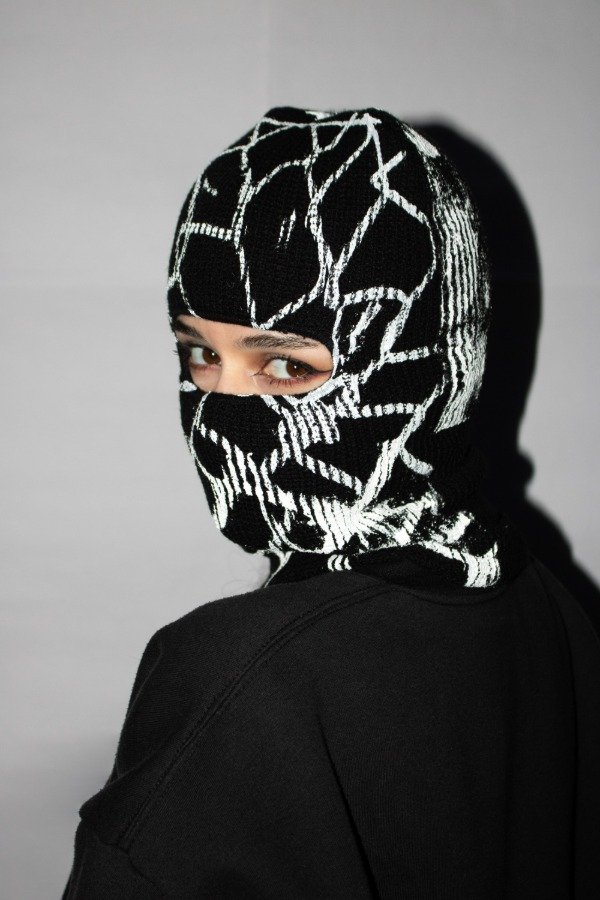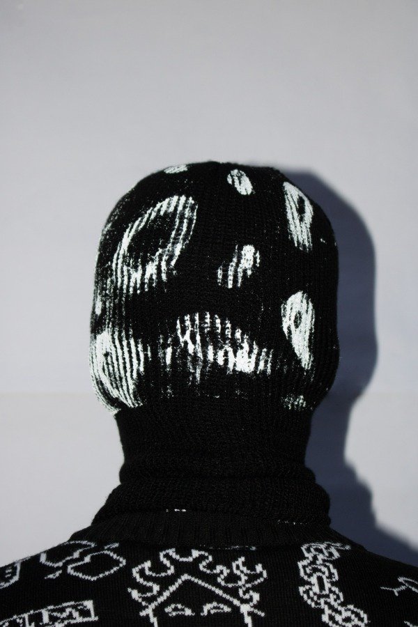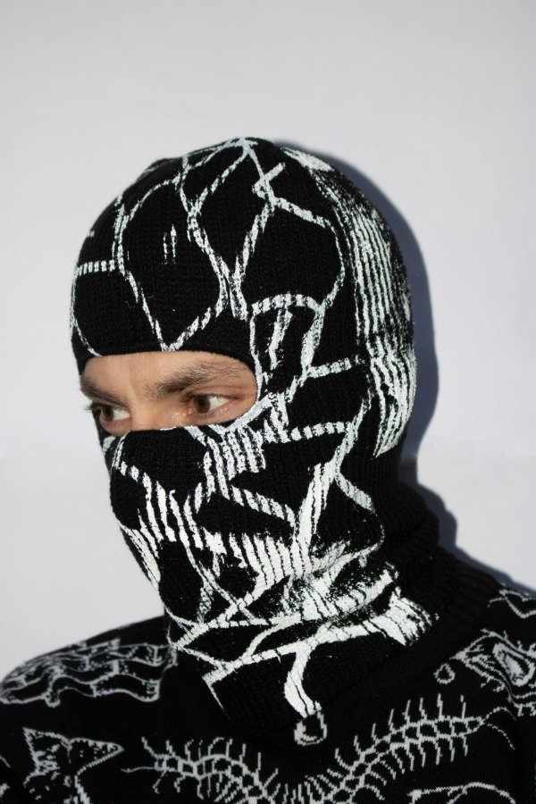 Gorro pasamontañas intervenido en serigrafia por el artista Tomas Spicolli.