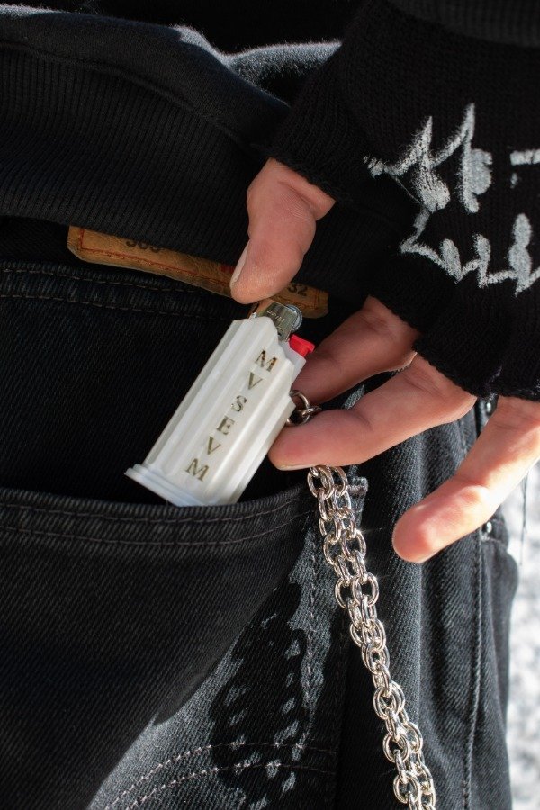 Portafuegos de columna dorica en impresion 3D para Mini Bic con cadena y mosqueto oblicuo incluido para colgarlo donde mas te guste.