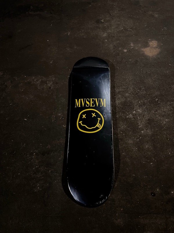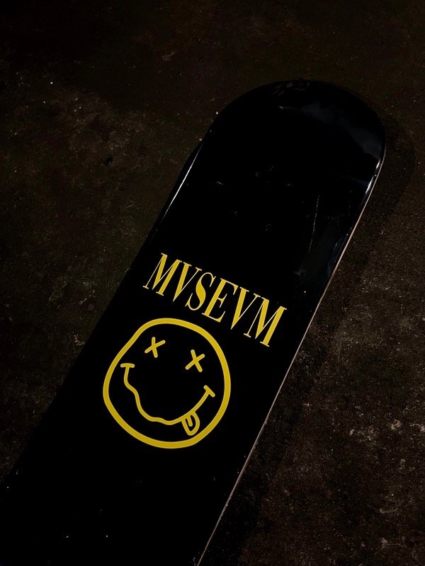 Tabla de Maple canadiense con capas teñidas y diseño del clásico logo de la legendaria banda Nirvana.